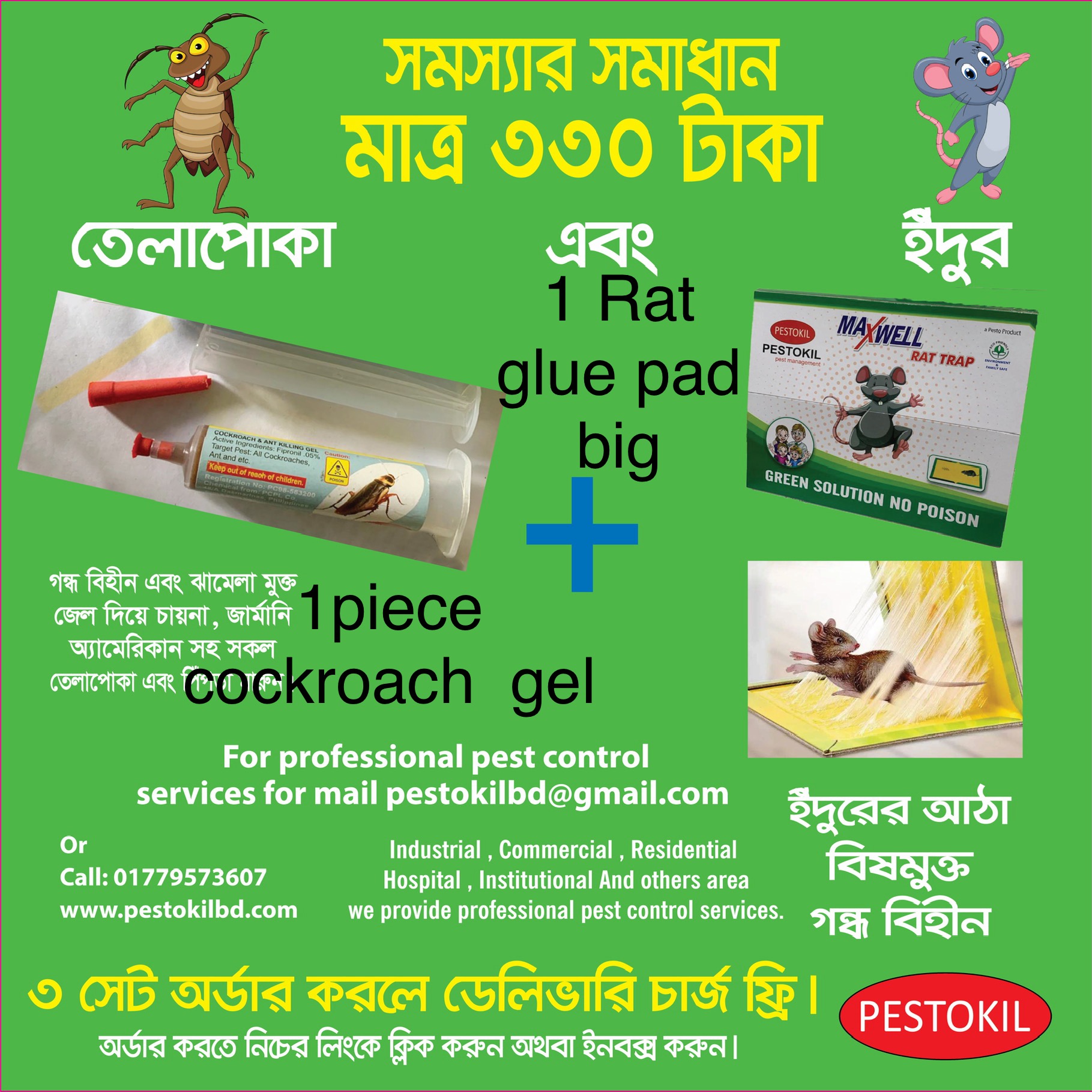 Combo Pack for cockroach and Rat only 330 Taka For you Pestokil offer only 330 Taka one Pice Cockroach gel and Rat Glue board.Cheap rated pest control service Submit a Comment Cancel replyYour email address will not be published. Required fields are marked *Comment * Name * Email * Website Save my name, email, and website in this browser for the next time I comment.